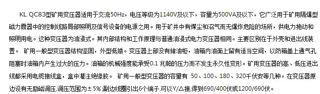KL QC83型矿用变压器
